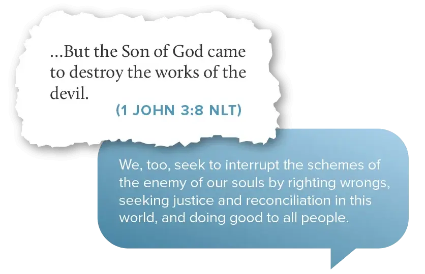 Jesus came to save the lost, give life to the full, and destroy the works of the devil. We’re “Jesus people” doing what Jesus did.
